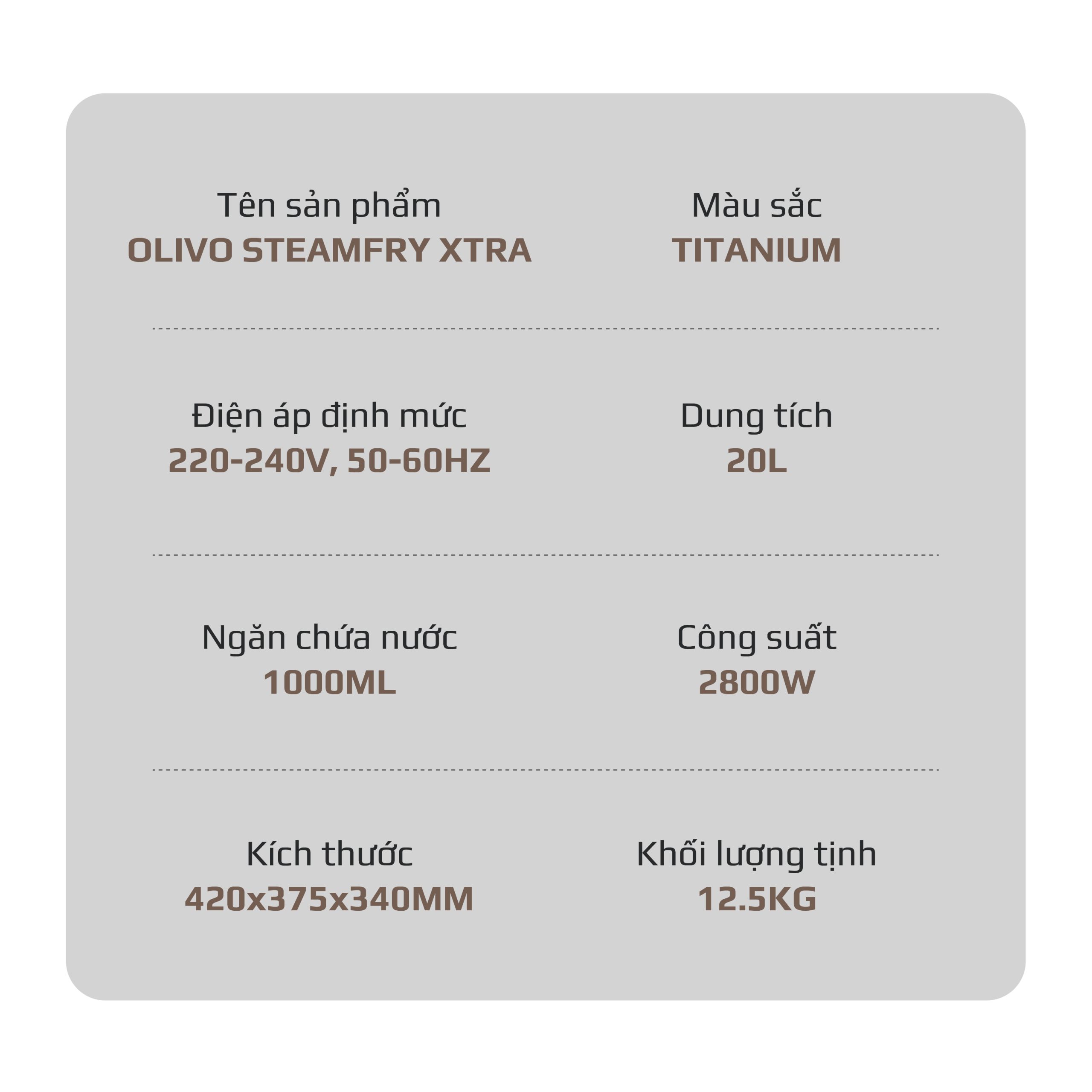 Nồi Chiên Hấp Đa Năng OLIVO SteamFry Xtra – Phiên Bản Cao Cấp, Bảng Điều Khiển OLED, Dung tích vượt trội 20L, Hấp Nano Steam/Chiên Eco Fry thế hệ thứ 2, 70 Chế Độ Cài Sẵn, Vệ Sinh Dễ Dàng
