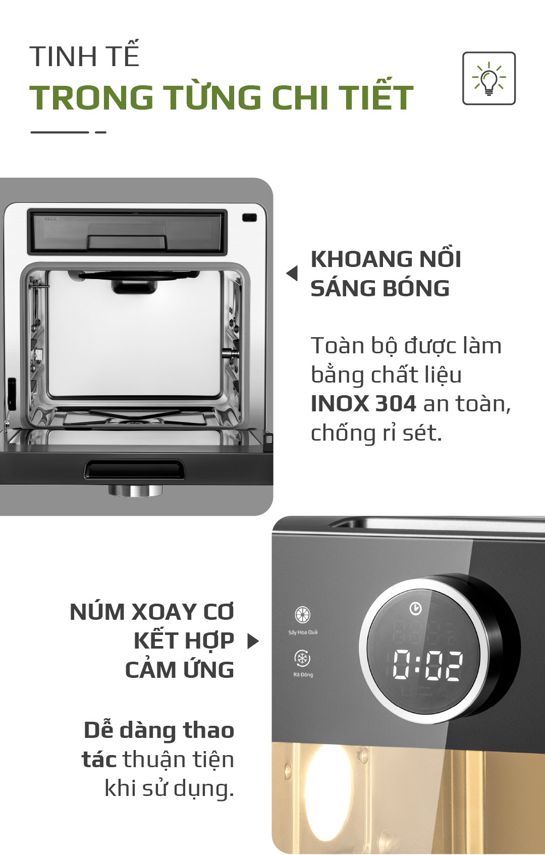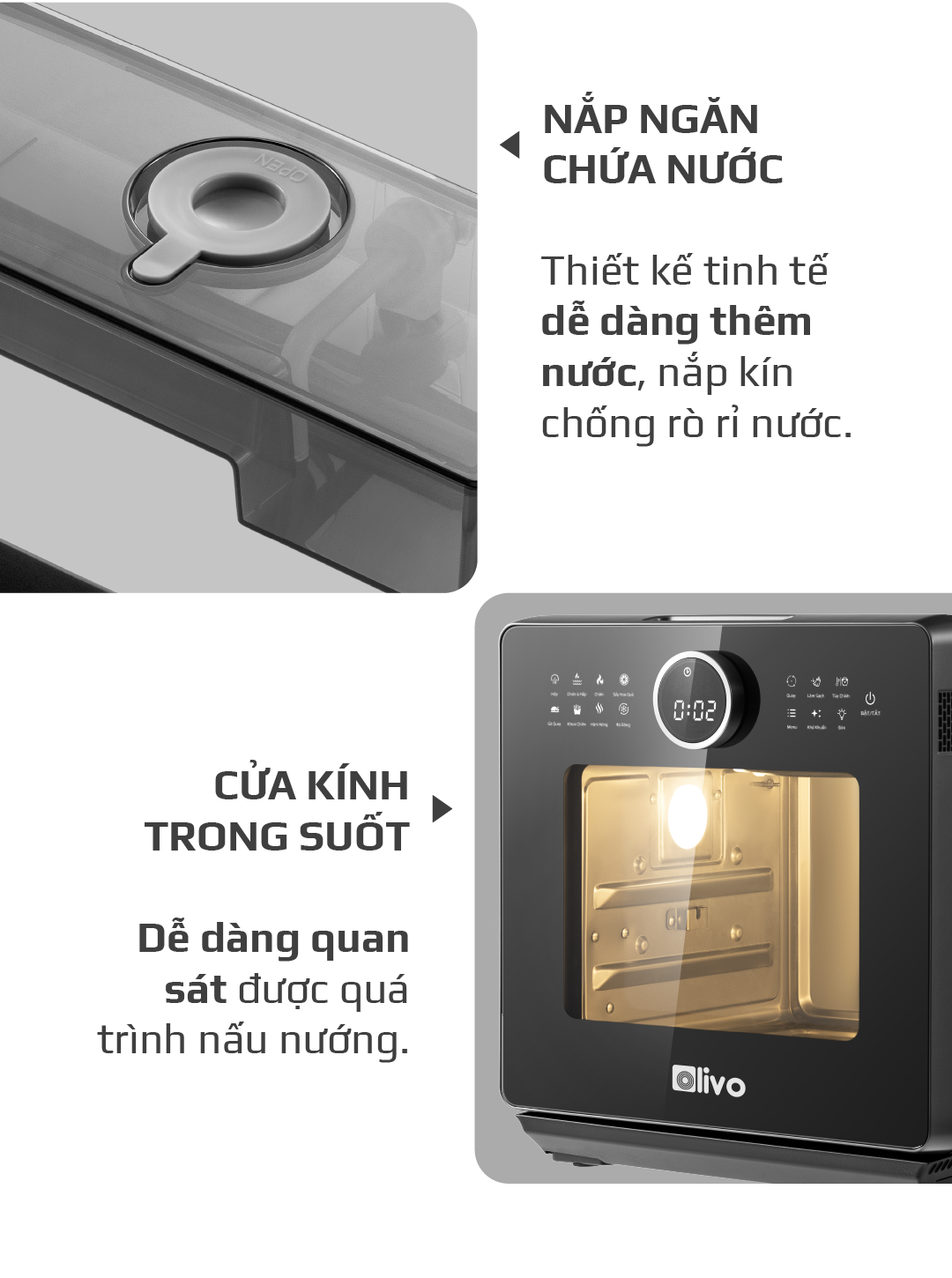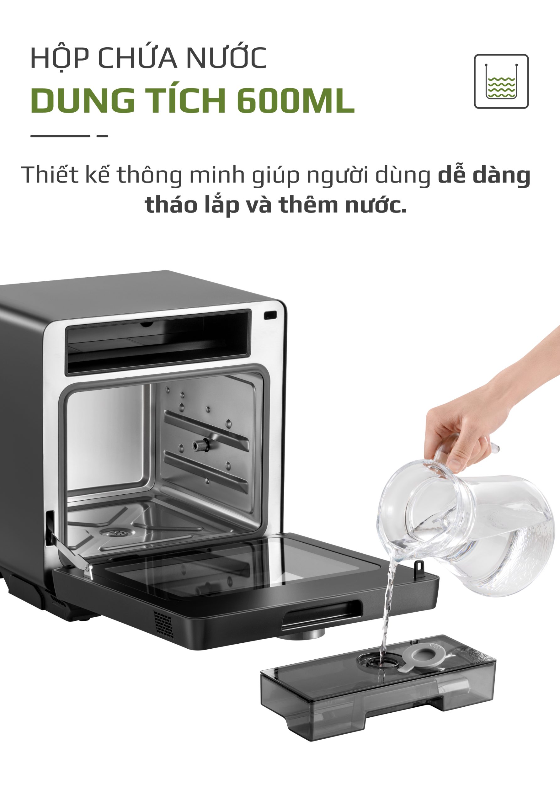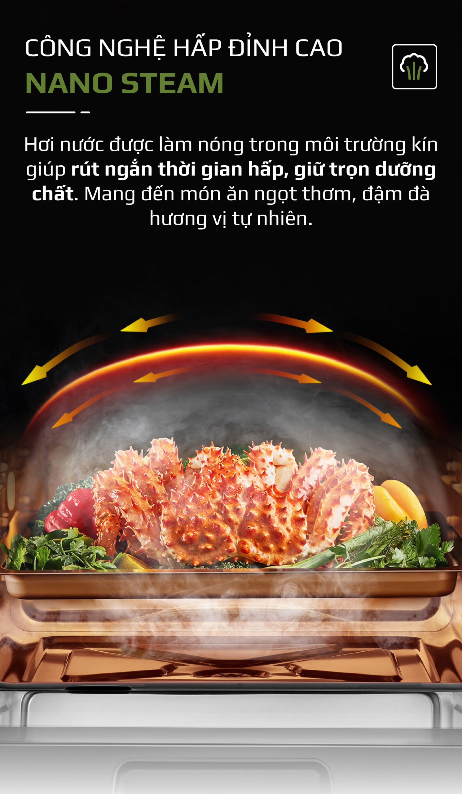 • Sản phẩm ứng dụng công nghệ Nano Steam làm nóng hơi nước trong môi trường kín kết hợp hệ thống phun hơi nước siêu nhiệt giúp bảo toàn dưỡng chất trong thực phẩm, tối ưu thời gian nấu. Cho thành phẩm món hấp ngọt thơm, đậm vị.