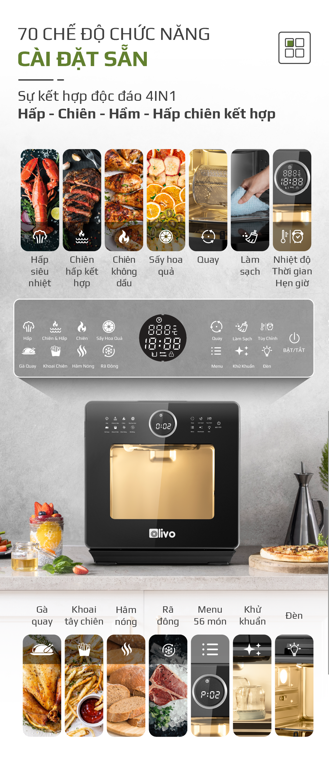 ƯU ĐIỂM VƯỢT TRỘI CỦA NỒI CHIÊN HẤP ĐA NĂNG OLIVO SF16 PRO