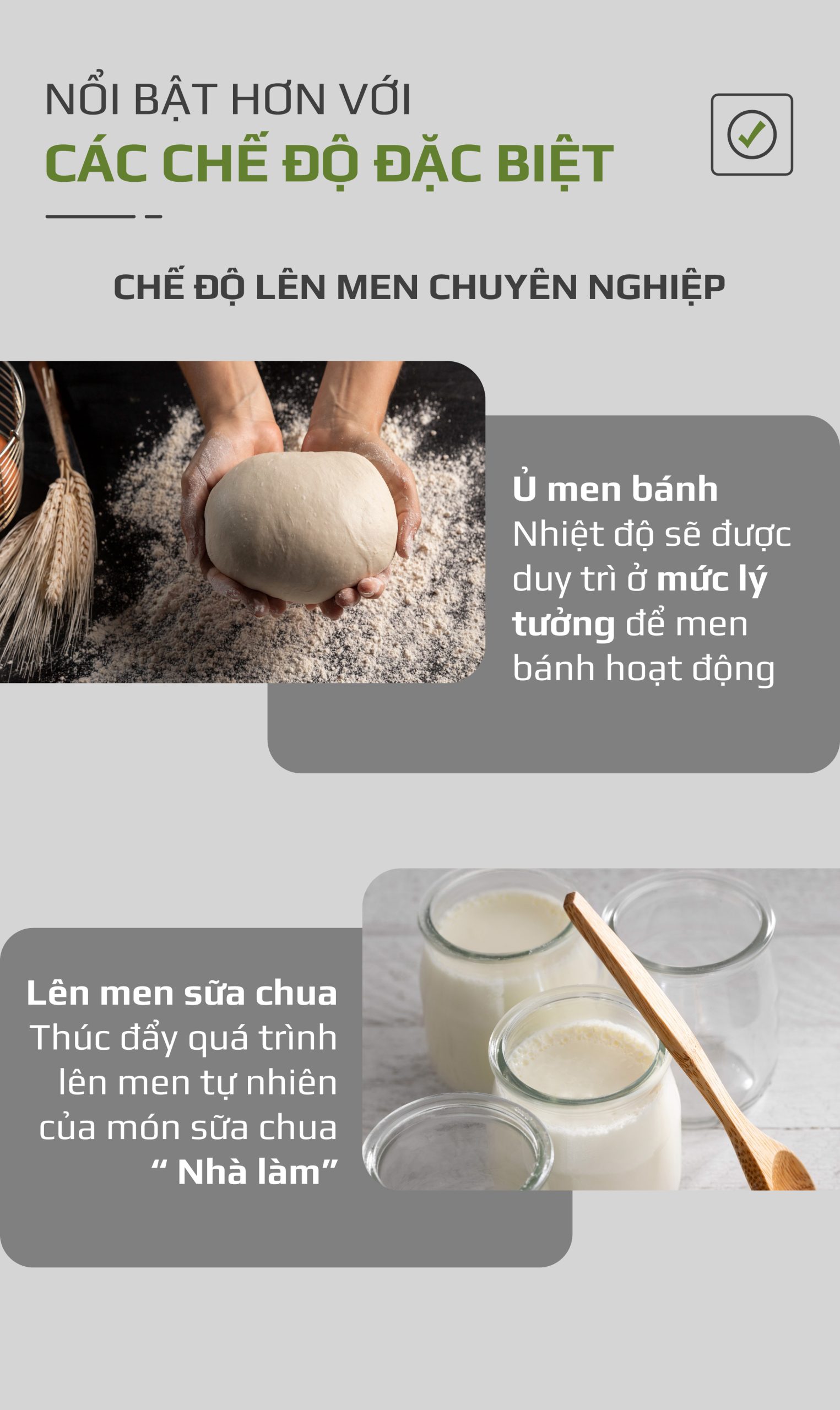 Ngoài 13 chương trình setup trên bảng điều khiển bên ngoài, còn có menu 56 món cài đặt sẵn phù hợp với ẩm thực và phong tục chế biến món ăn của người Việt.