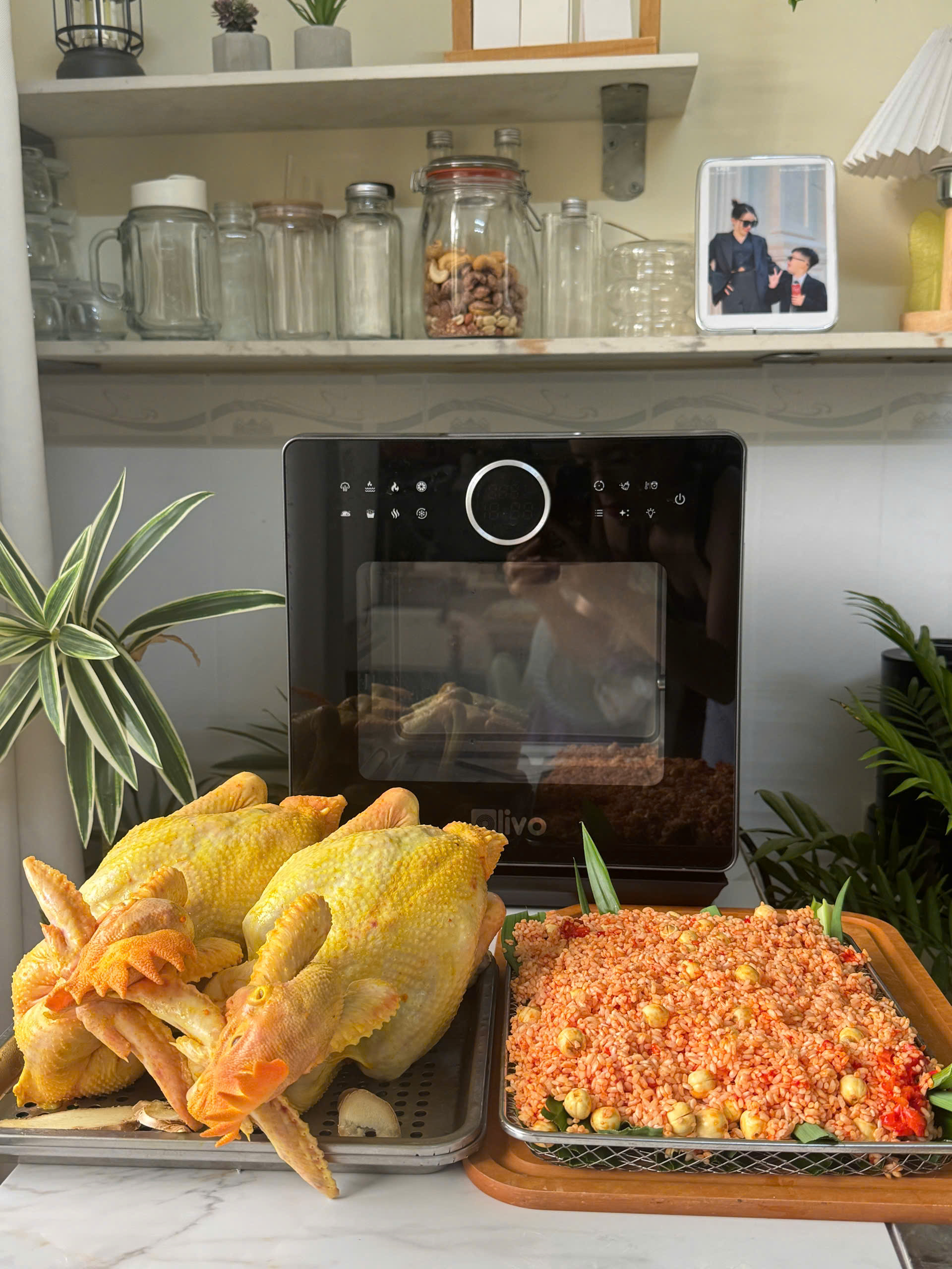 Đã dùng máy vài tuần, chiên gà giòn mà không khô, hấp bánh mềm. Nồi khá to, vệ sinh dễ